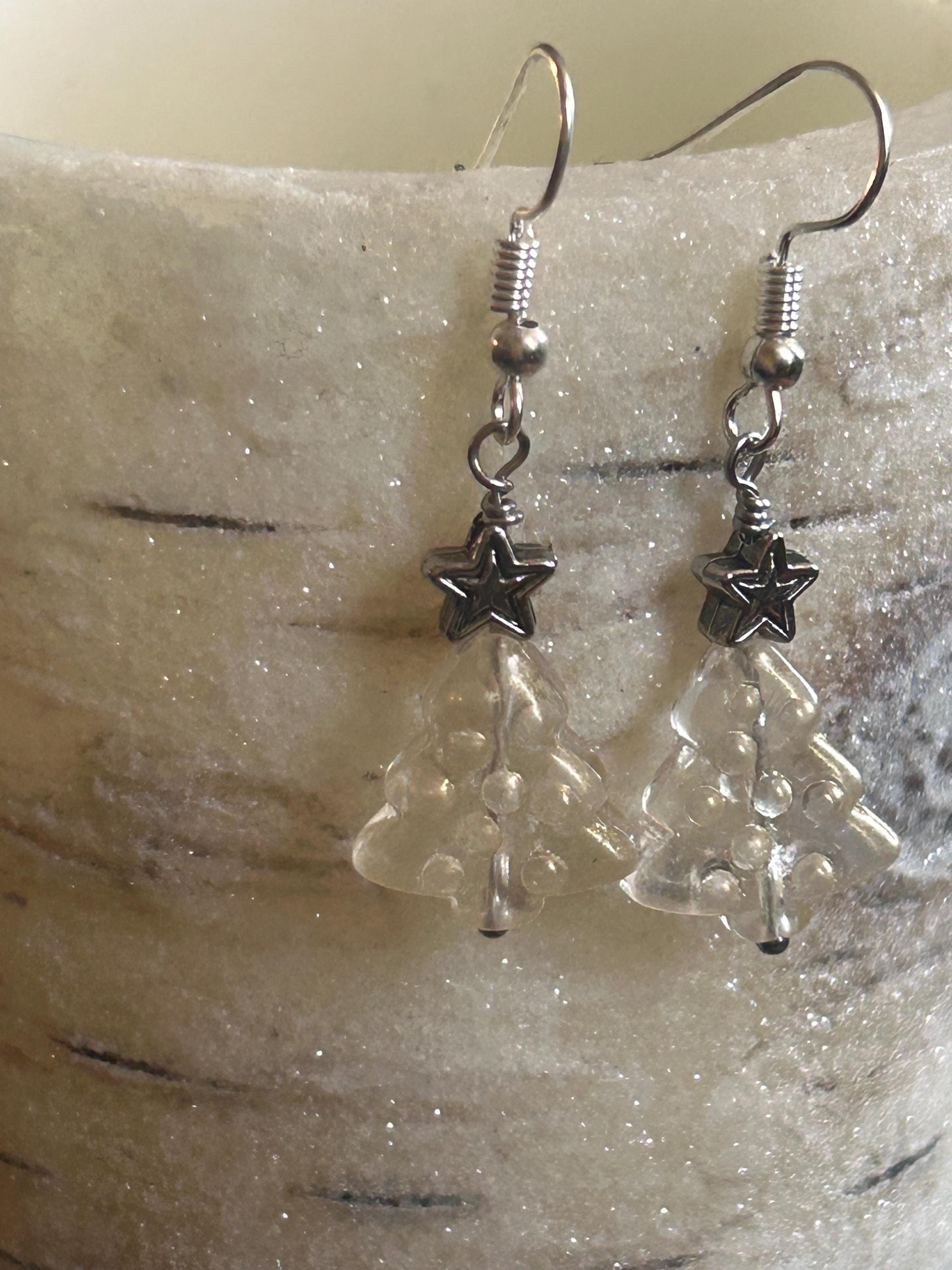 A simple Christmas tree bead paired with a silver star and Sterling silver hooks. Make a simple classic look for the holiday holidays.